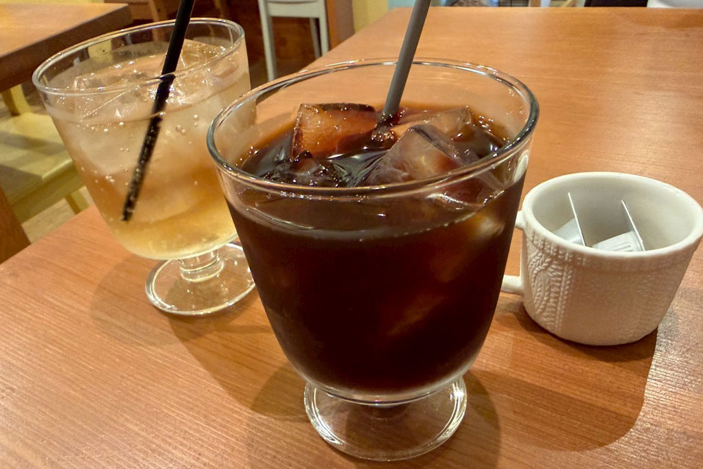 食後には、ジンジャーエールとアイスコーヒーでほっとひと息。