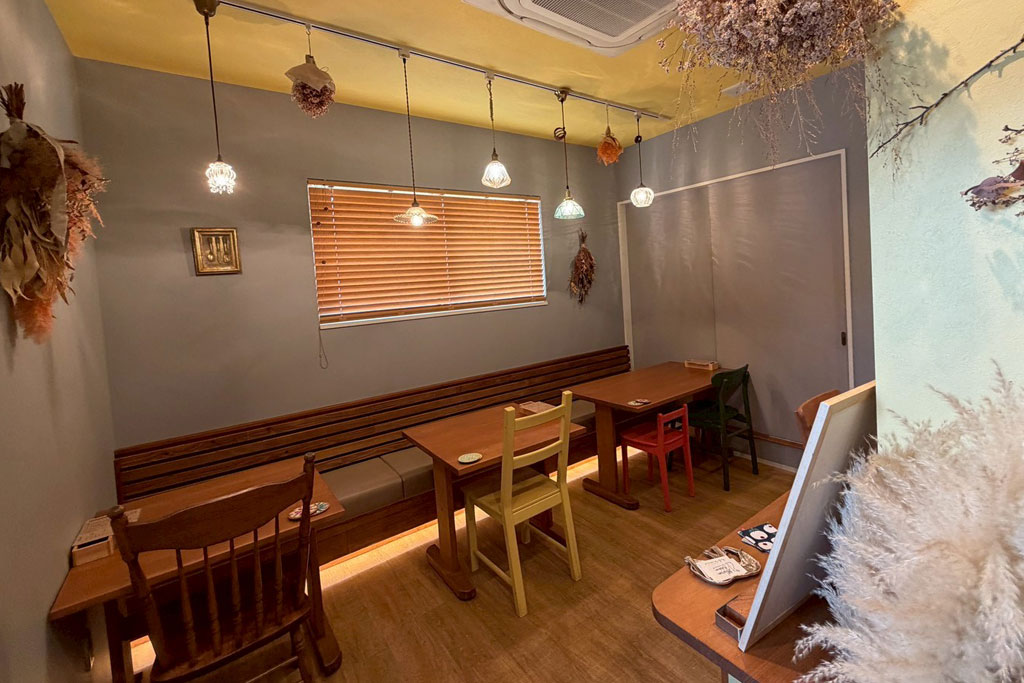 4人掛けのテーブル席が1卓と2人掛けのテーブル席が2卓、カウンターが3席あります。ほどよい距離感でゆっくり過ごせるのが嬉しいところ。