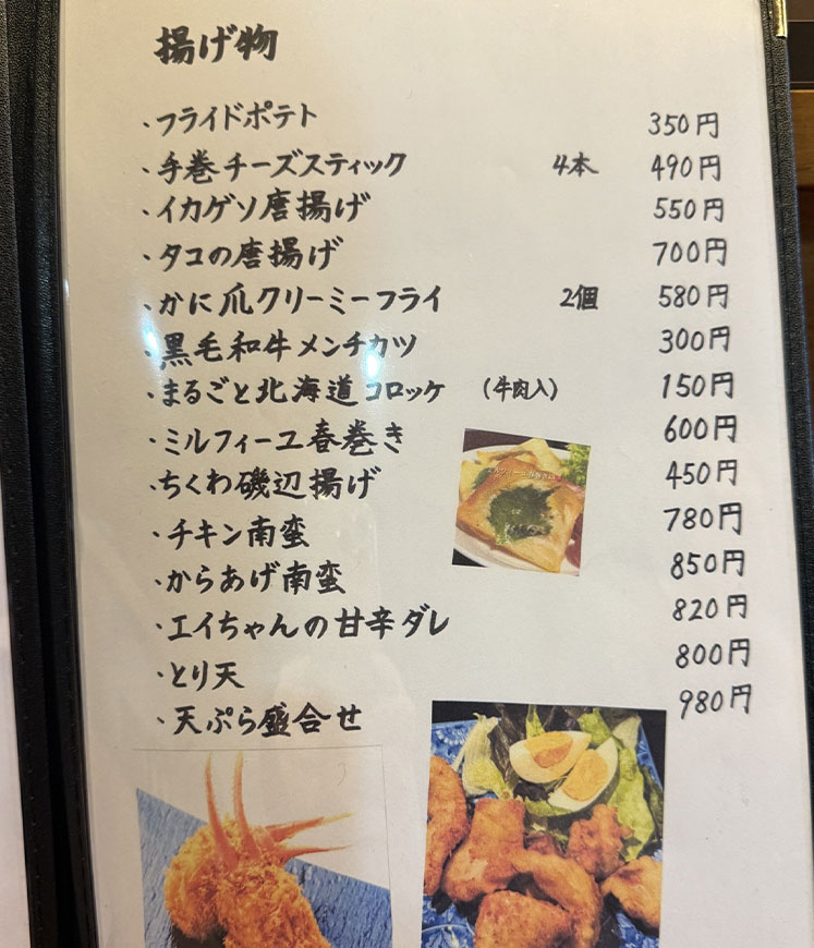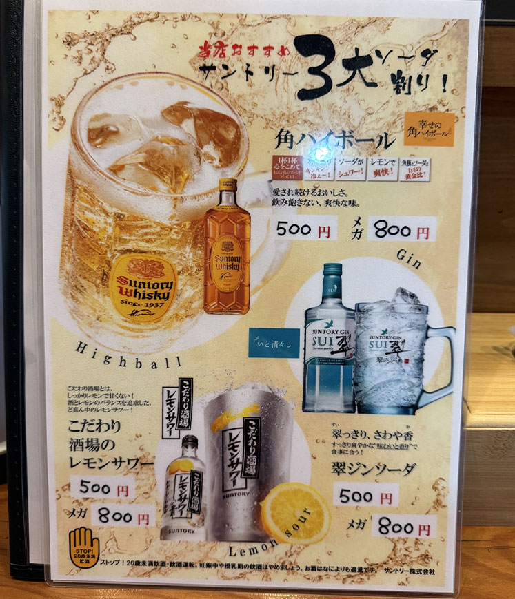 からあげ以外にも、ご飯もの、逸品料理、揚げ物、串揚げなど、夜の居酒屋メニューも充実。しっかり食べたいときにも軽く飲みたいときにも利用できます。