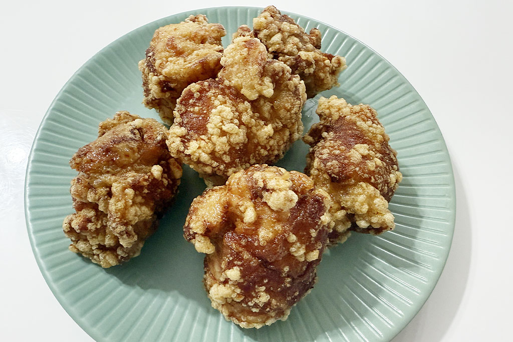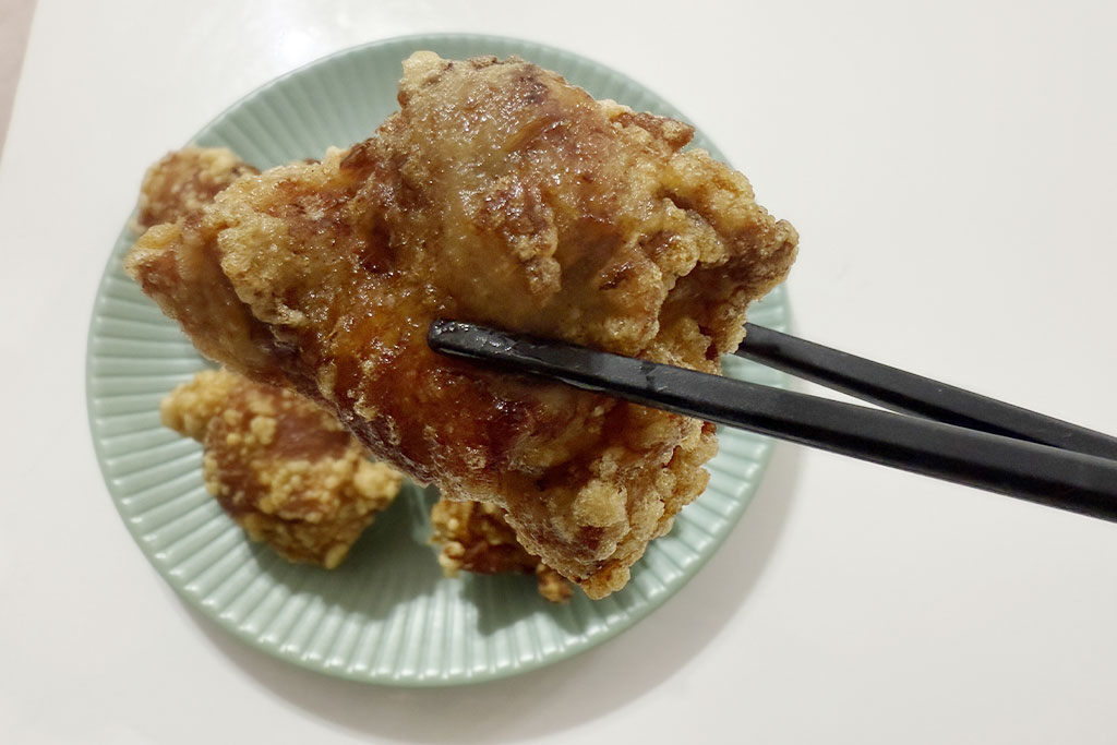 重量感のあるおおぶりなからあげで、表面の衣はカリッと香ばしい仕上がり。見た目からも食欲をそそります。