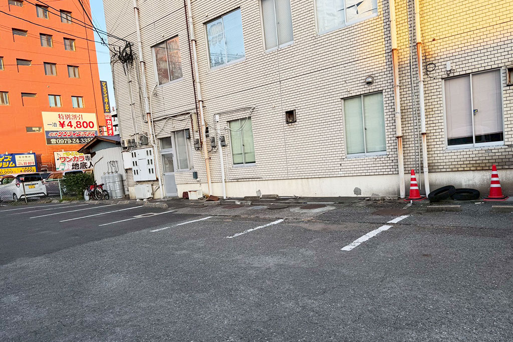 そのまま少し進むと、右手にビル専用の駐車場があります。