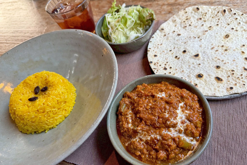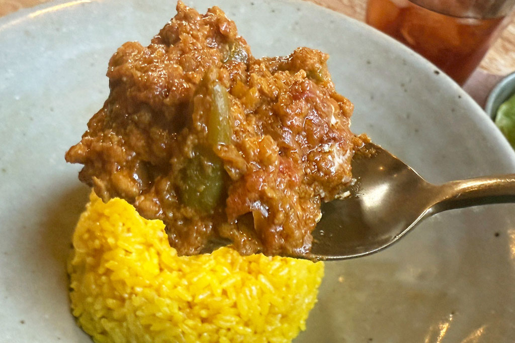 キーマは基本の辛さの2辛だそうで、確かに少し辛い印象。スパイスの香りはしっかり感じつつも、お肉の旨みがじんわり広がり、ライスが進む仕上がりでした。