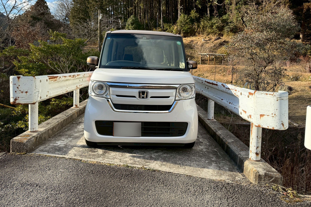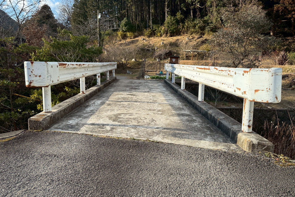 お店へ入るには、細い橋があります。車一台分ほどの幅なので、初めて訪れる方は少し緊張するかもしれません。軽自動車での来店がおすすめ。ここを渡ると、いよいよお店が見えてきます。