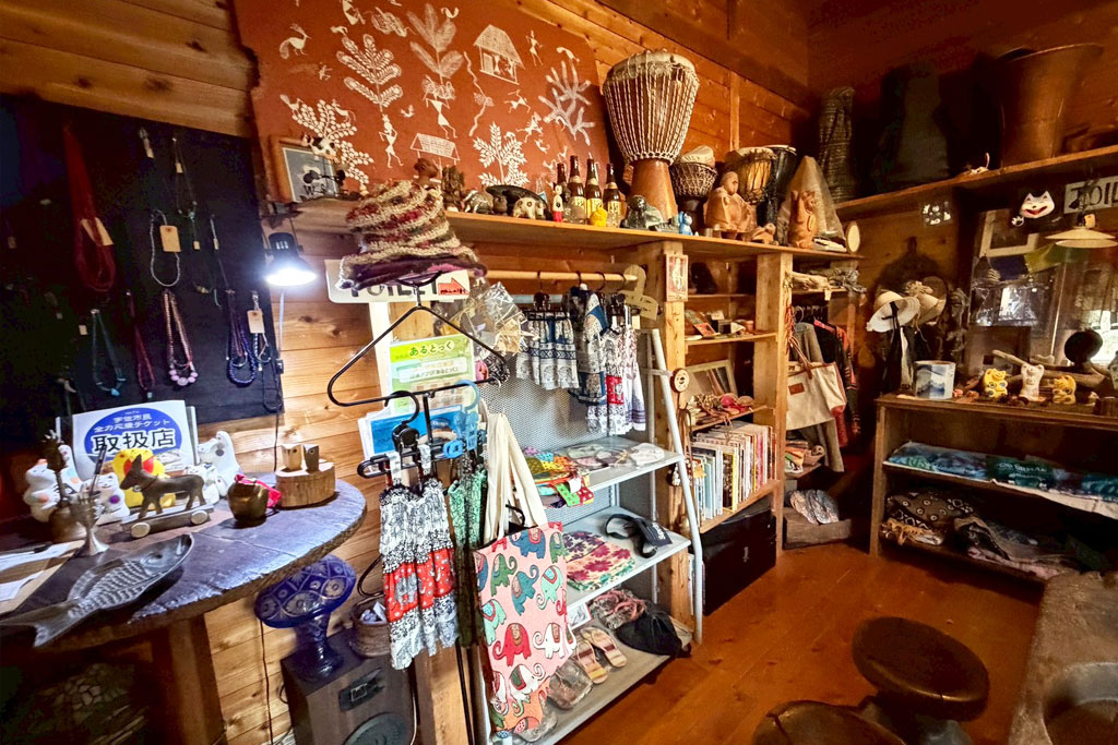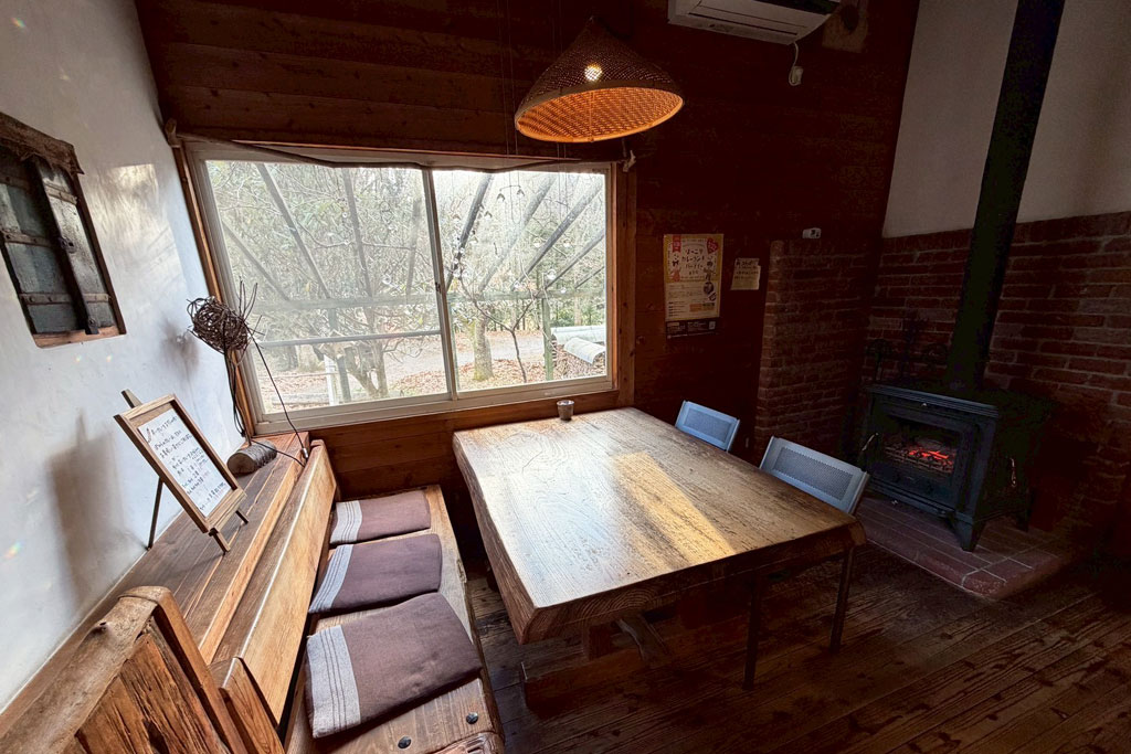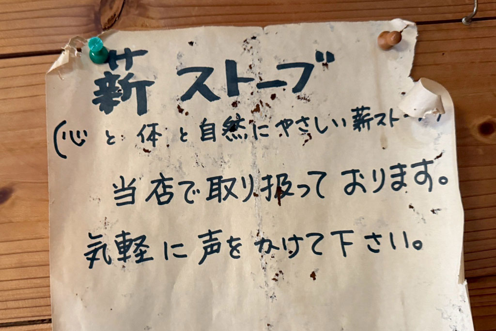 店内の薪ストーブはじんわりと暖かく、ほっとする居心地。取り扱い販売もしています。雑貨も置いてあり、食後にゆっくり見て回るのも楽しい時間です。カレーの余韻とともに、空間ごと味わえるのがこのお店の魅力です。