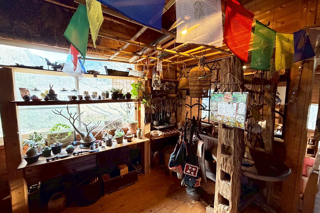 カレーだけじゃない、店内に並ぶ雑貨と薪ストーブ
