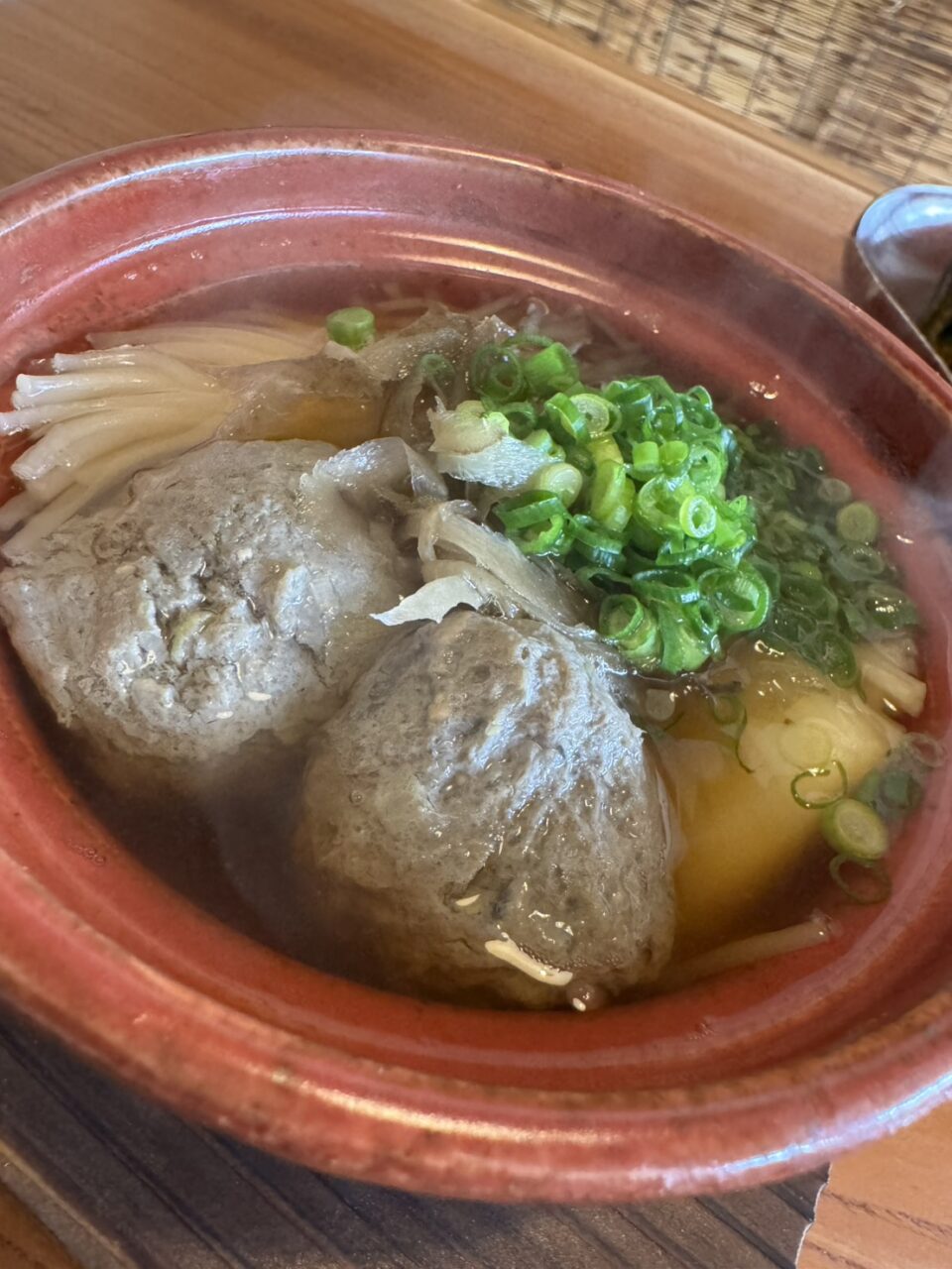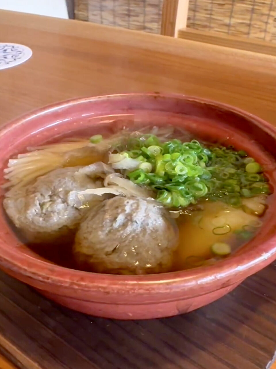 煮麺に入ったつみれも、もちろんどじょう。ふんわりとやわらかな口当たりで、出汁をたっぷり吸い込んだ優しい味わいが広がります。