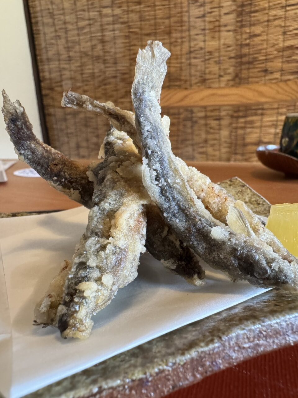 カラッと軽やかに揚がったどじょうの唐揚げ。香ばしさが口いっぱいに広がり、噛むたびに旨みがじゅわっと感じられます。クセがなく食べやすいため、ついつい次の一個に手が伸びてしまう美味しさです。