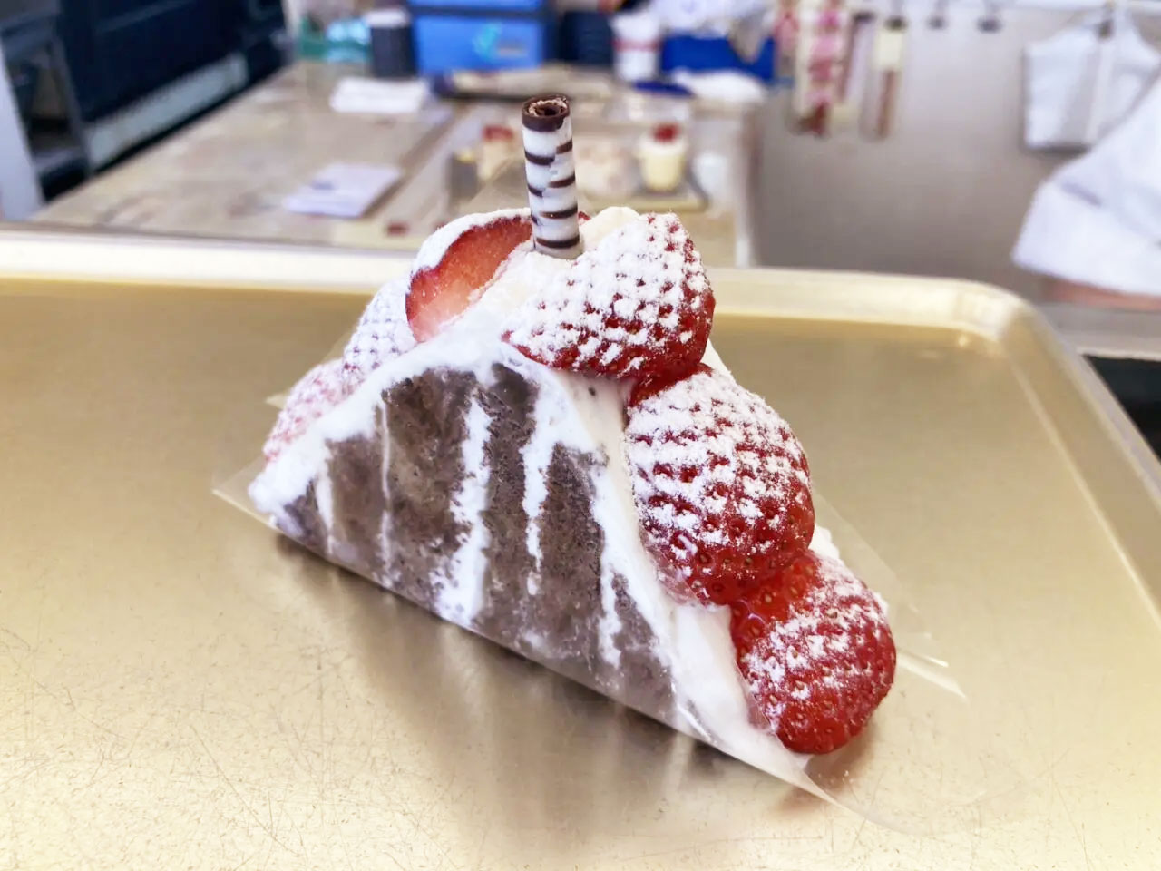 ココアスポンジと苺があるケーキです。