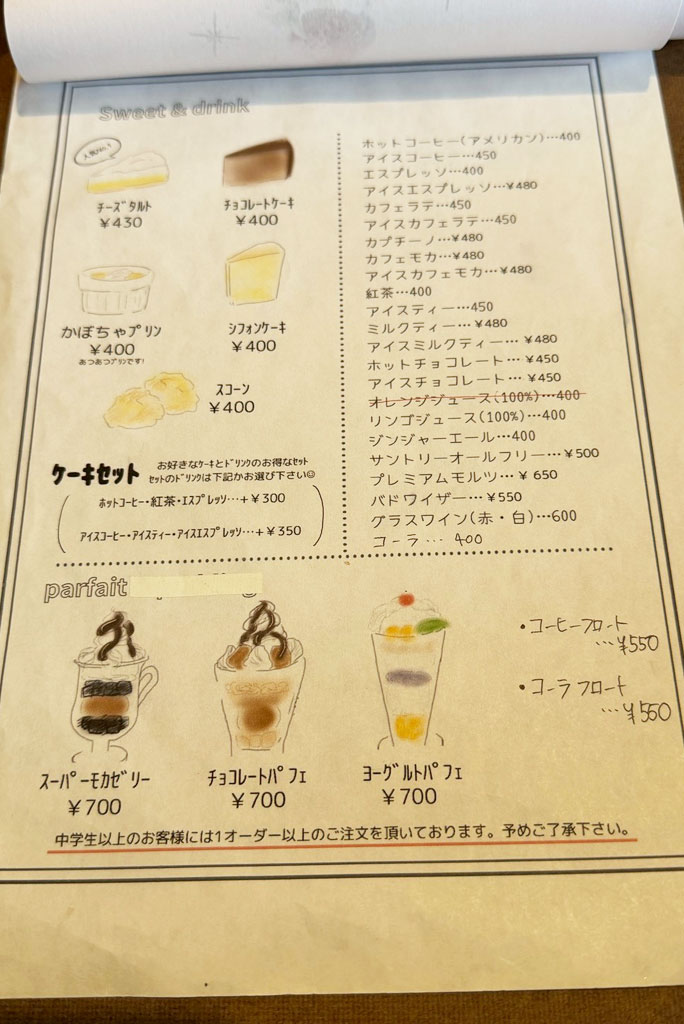今回はパフェを中心に楽しみましたが、店内ではケーキセットも用意されています。