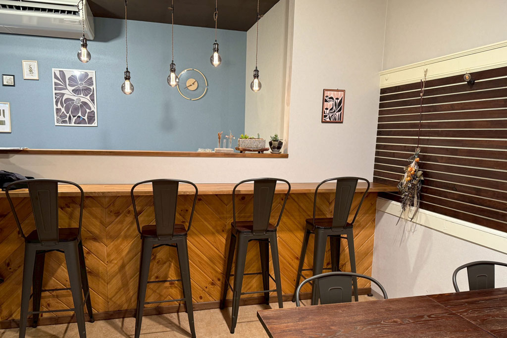 カウンターもあり一人でも入りやすく、友人同士や落ち着いた時間を過ごしたい人にもぴったり。