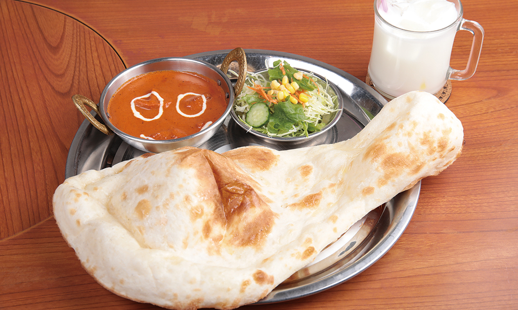 20種以上のスパイスを調合した奥深い香りがただようこちら。Aセットは毎日変わる3種のカレーから1種を、Bセットでは2種が選べます。新しい味への挑戦もセットなら気軽! お皿からはみ出すほど大きな焼きたてナン、またはライスとどうぞ!