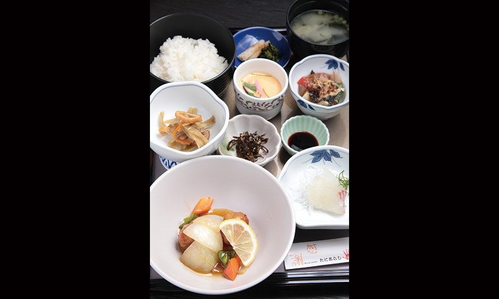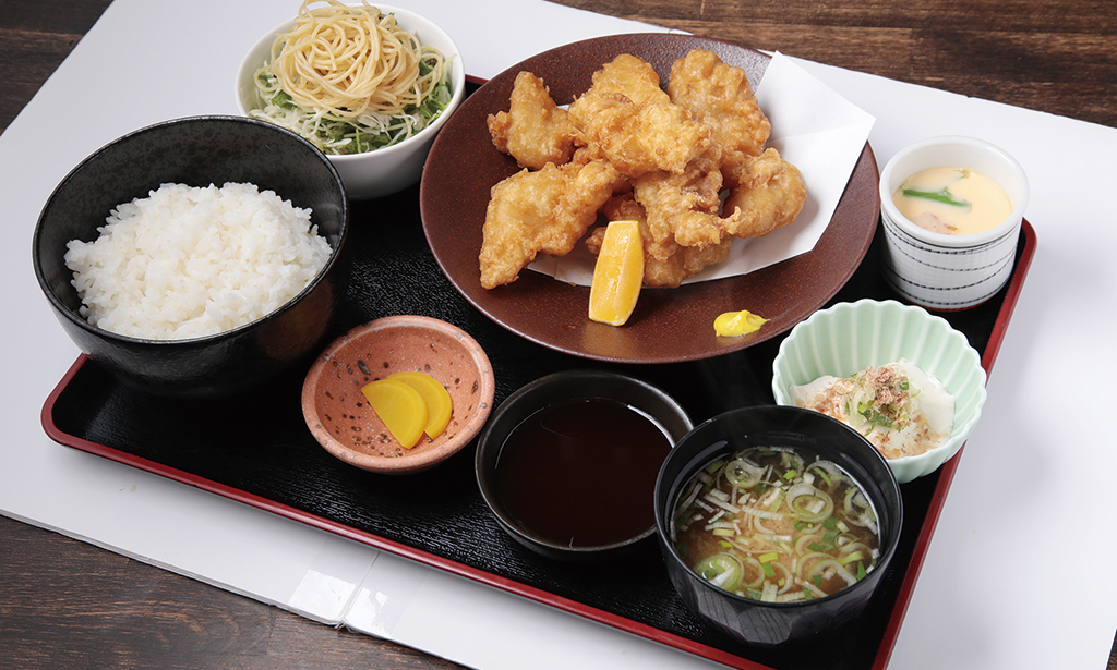 主役は、地場で獲れた鮮魚や旬の食材。焼く、煮る、揚げる、様々な手法でその日一番の美味しさが日替わりで登場します。熟練の技をゆるりと味わってください。※ご飯をかしわご飯「鬼めし」に別途変更も可能