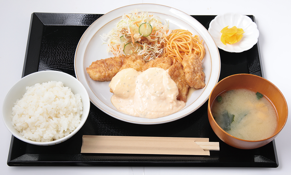 チキン南蛮のために仕上げた特製タルタルソースがたっぷり。これだけでご飯が進むやん…と言っても過言ではないほど、研究を重ねた自信作です。むね肉なのにやわらかくって、ボリューム満点なのにあっという間に完食。