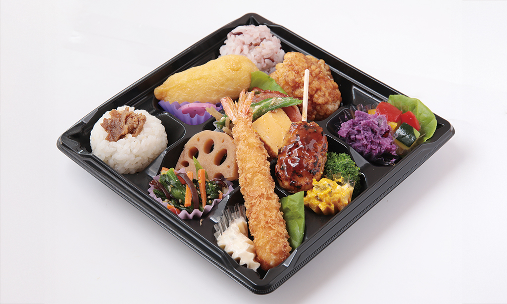 好評の9マス弁当に、春限定の彩り豊かにボリュームアップした9マス弁当が仲間入り。甘辛だれの特製唐揚げや紫芋サラダ、つくね串など、季節の彩りと美味しさを少しずつ楽しめる一折です。今日のお昼ごはんにぜひ。
