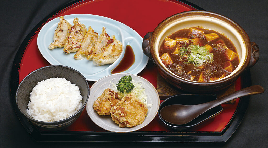 主役は、ピリッとした刺激がクセになる本格派の四川風麻婆豆腐。そこに、黒豚の甘みが凝縮された「くらや特製黒豚餃子」とジューシーな唐揚げが加わった、まさにスタミナ尽くしの豪華ラインナップ。