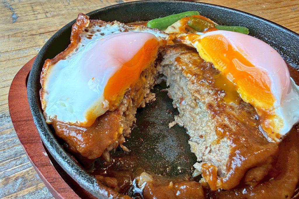 ハンバーグに半熟の目玉焼きがのった、王道の組み合わせ。