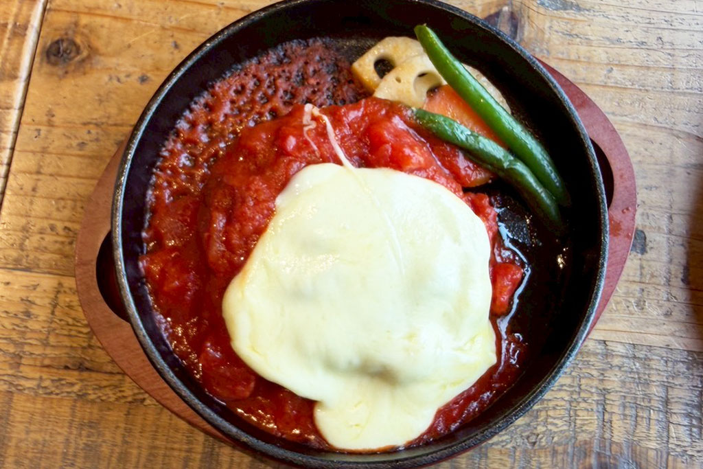 トマトソースの酸味に、とろけるチーズのコクが重なったバランスのいい一皿。ほどよい酸味があることで重たくなりすぎず、最後まで食べやすい味わいです。