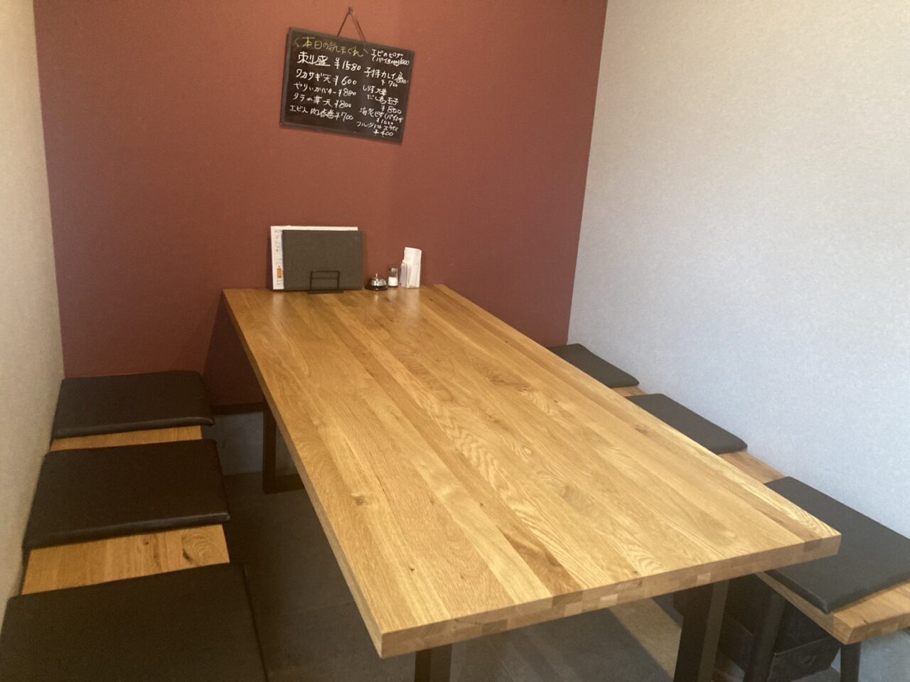 店内は個室1部屋と4人掛けテーブル1つとカウンター9席です。