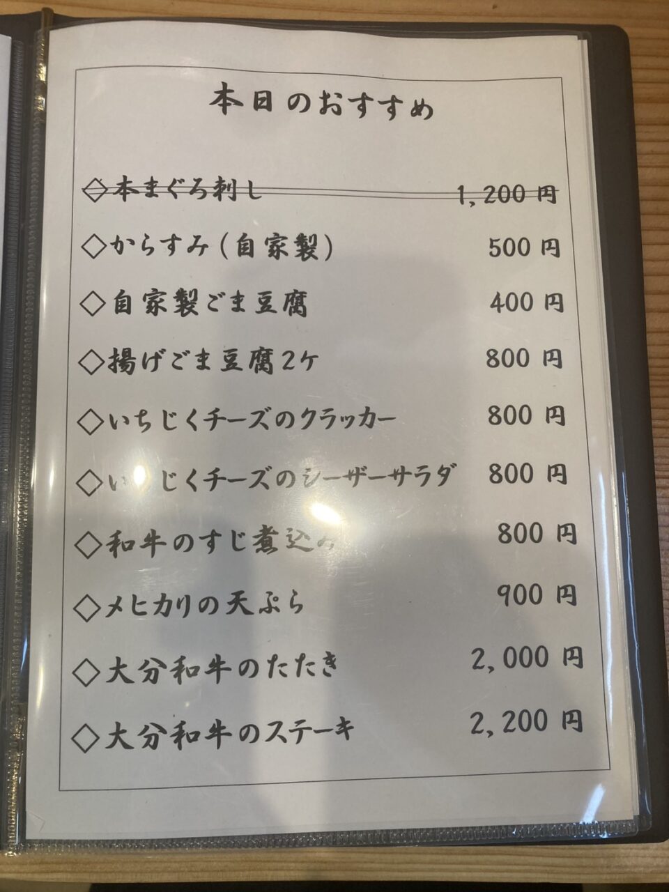 夜の時間帯は、季節の肴を中心とした料理が並び、仕事帰りの一杯や家族での食事にもぴったり。特に、旬の魚を使った料理や、手間を惜しまず仕込まれた小鉢の数々は、訪れるたびに新しい発見があります。落ち着いた雰囲気の店内で、ゆっくりと食事を楽しめるのも嬉しいポイントです。