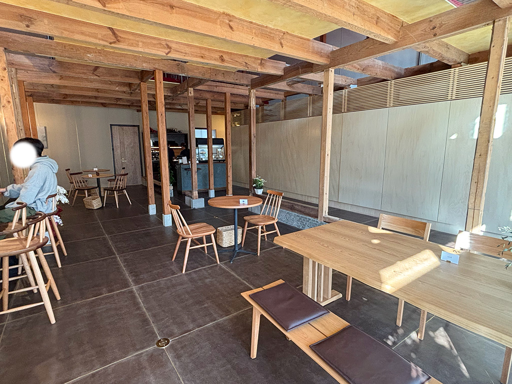店内は、木のぬくもりを存分に感じられる、落ち着いた和モダンな空間。広々としたフロアにはゆとりを持ってテーブルが配置されており、周りを気にせずゆったりと過ごせるのが魅力です。