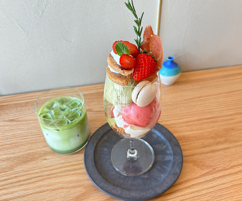白砂糖や小麦粉を使わずに仕上げられたスイーツは、軽やかでありながら満足感のある味わい。月替わりのパフェや丁寧に作られたケーキは、見た目の美しさだけでなく、食べ進めるほどに新しい発見があるのも魅力です。気づけば最後までゆっくり味わいたくなる、そんな一品に出会えます。