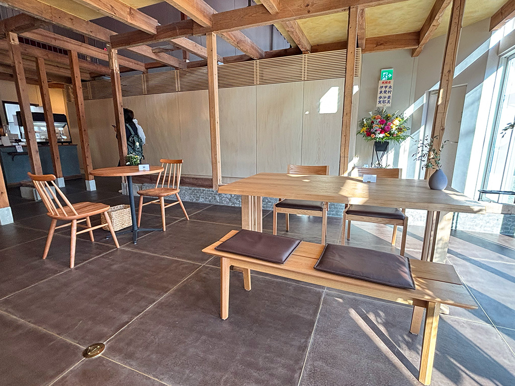 店内は、木のぬくもりを存分に感じられる、落ち着いた和モダンな空間。広々としたフロアにはゆとりを持ってテーブルが配置されており、周りを気にせずゆったりと過ごせるのが魅力です。