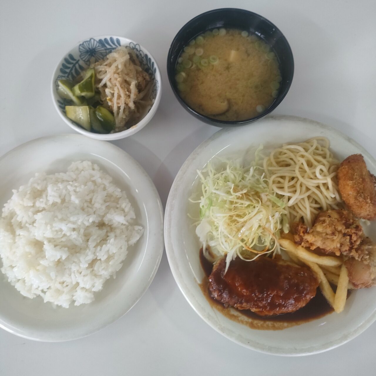 ハンバーグとからあげとコロッケがメインのこちらのランチメニュー。