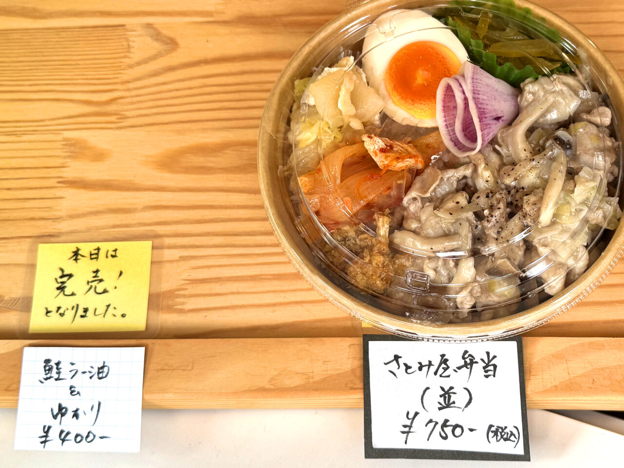 仕出しだけでなく、通常販売のさとみ屋弁当【上】1,200円/【並】750円、そしておにぎりセット400円も人気。