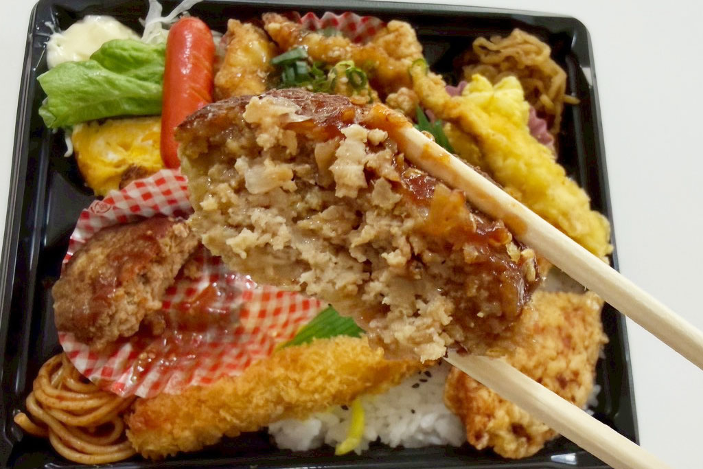 日替わりのおかずに加え、ミニハンバーグ・チキンカツ・からあげ・えびフライと、人気のおかずが一度に楽しめる贅沢な内容。
