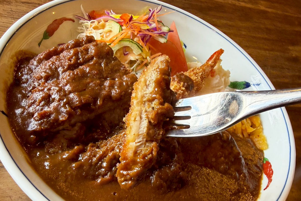 っくり時間をかけて煮込まれたルーは、とろみのある濃厚な仕上がり。スパイシーさの中にもコクとまろやかさがあり、全体のバランスがとれた味わいです。ごはんや具材ともよく合い、さまざまな味を楽しめる一皿です。