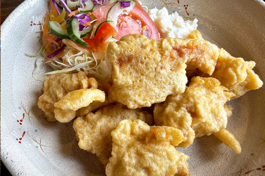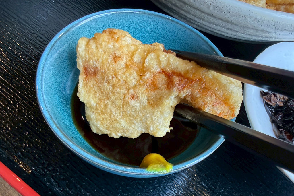 揚げたてのとり天は、衣がサクッと軽く、中はしっとりやわらかな仕上がり。噛むほどに鶏の旨みが広がり、重たさを感じにくい食べやすさも印象的です。