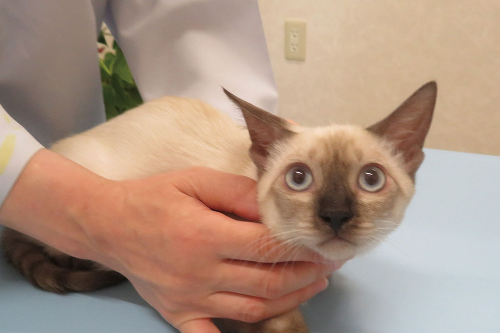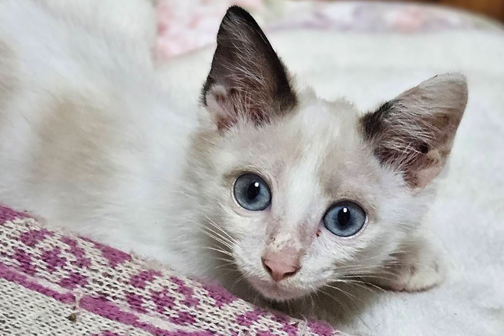 推定4月頃生まれの男の子。宇佐市のある家の庭にいたところを保護しました。8月3日時点ではエイズ・白血病陰性、ノミ・寄生虫予防のお薬を塗布。ねこじゃらしで遊ぶのが大好きな活発な子です。