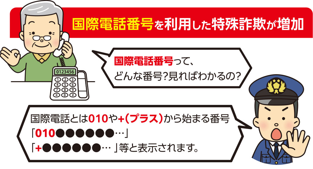 海外からかかってくる電話による「特殊国際詐欺」に注意が必要です。