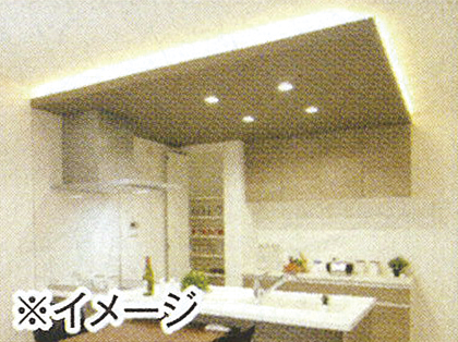 ◎折下天井・・・キッチン上部は折下天井が落ち着いた雰囲気を演出します。
