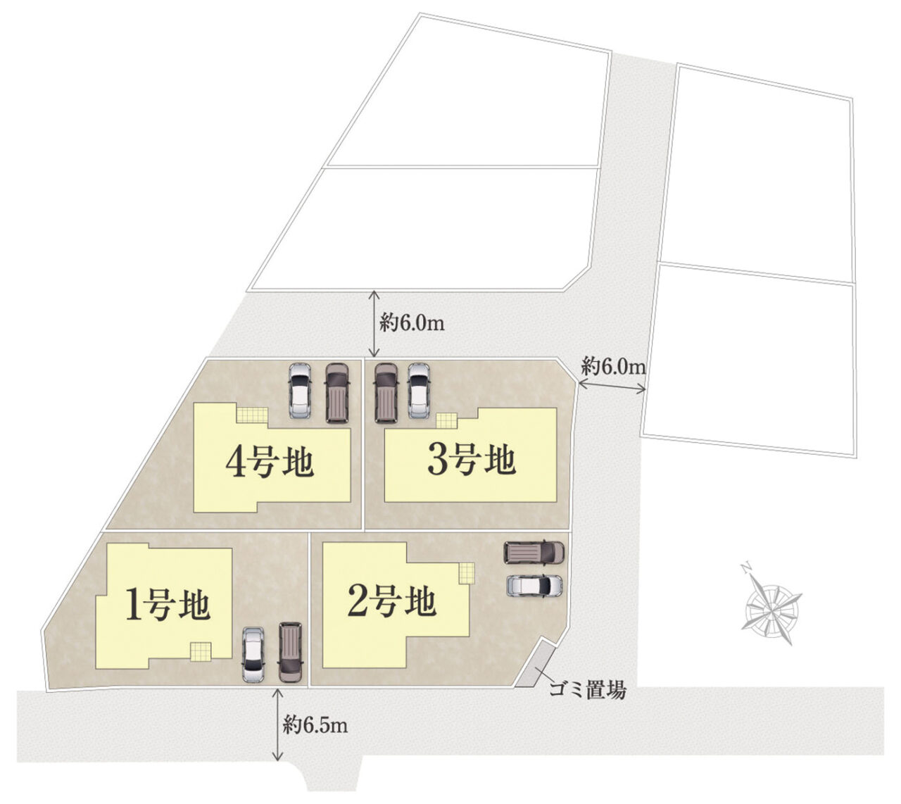 【物件概要】●所在地/中津市下池永字中北1008-3他 ●交通/JR日豊本線(東中津)駅 車約6分)(約2,200m) ●総棟数/4棟 ●今回販売棟数/4棟 ●敷地面積/270.96㎡(81,96坪)~293,26㎡)(88.71坪 ●延床面積/102.27㎡(30.93坪)~112,62㎡(34.06坪) ●販売価格/2,780万円~2,980万円 ●地目/宅地 ●用途地域/第一種低層住居専用地域 ●建ぺい率/60% ●容積率/200% ●接面道路/南側:幅員4,7m、東面から北面:幅員6m ●私道負担面積/なし ●建物構造/木造軸組工法 ●建築確認番号/第R070207号(4号地) ●上水道/公営上水道 ●下水道/合併浄化槽 ●電気/九州電力(オール電化) ●現況/建築中 ●完成時期/2025年10月予定 ●入居可能時期/2025年10月予定 ●土地権利/所有権 ●取引形態/売主