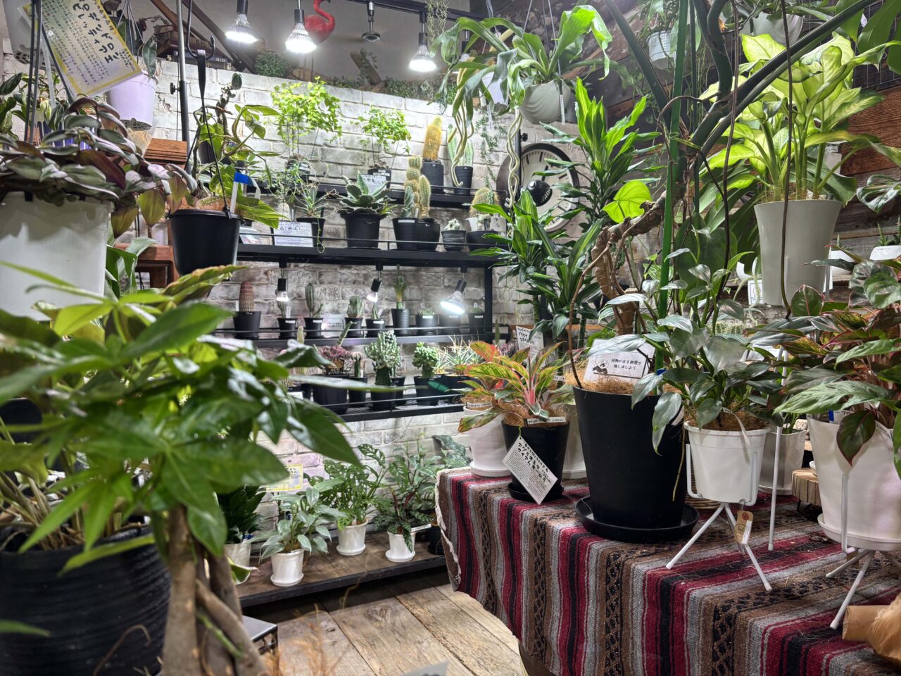 いざ店内に入るとそこには一面観葉植物がびっしり!店員さんに温かく迎え入れていただけます。