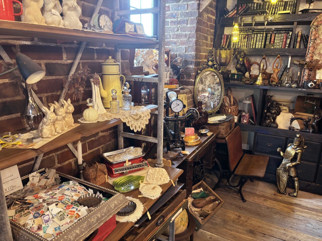 さらに店内奥には、アンティーク雑貨がずらり。一見雑然としているようで、コーナー毎に丁寧に飾られており、いつまででも見ていられます。