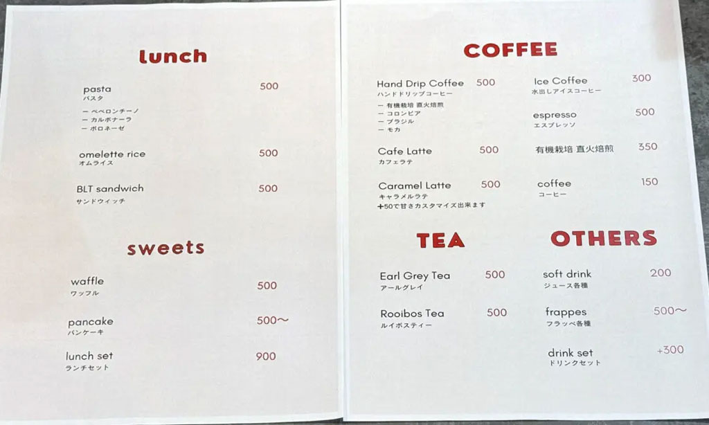 ランチや気軽に楽しめるコーヒーやパンケーキなどもあり、ひと息つきたいときにぴったり。