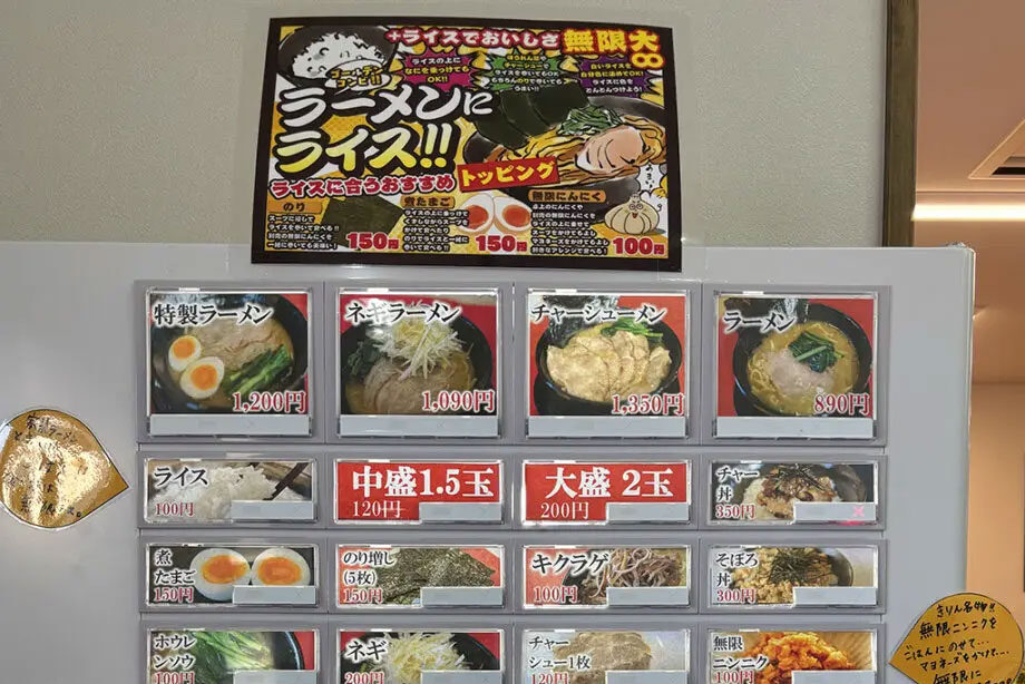 ラーメンとライスの組み合わせもおすすめで、海苔やトッピングと一緒に楽しめば満足度もアップ!