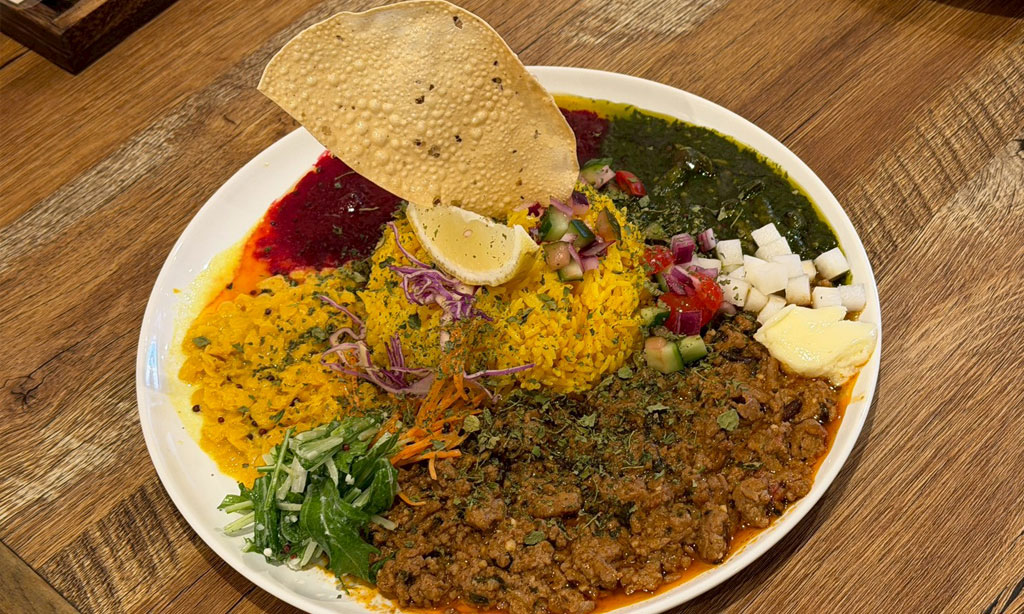 落ち着いた店内にはテーブル席とカウンターがそろい、ひとりでも気軽に立ち寄れる雰囲気。女性店主が作る彩り豊かなスパイスカレーは、素材ごとの個性がしっかりと感じられる奥深い味わいです。まずは一品ずつ、最後は混ぜて味の変化を楽しむのがおすすめ。食後には季節のフルーツを使ったスイーツで、ほっと満たされる時間が過ごせます。