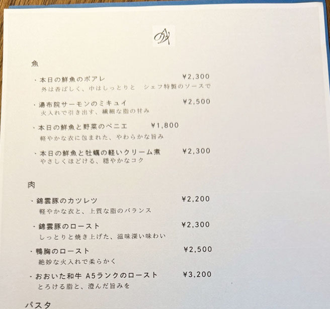 シェフがこれまでに出会ってきた間違いのない食材を、フレンチの技法を活かした一皿に仕上げてくれます。素材の味を大切にしたやさしい味わいで、日によって変わる内容も楽しみのひとつです。