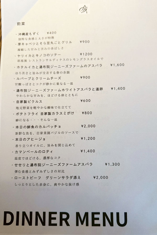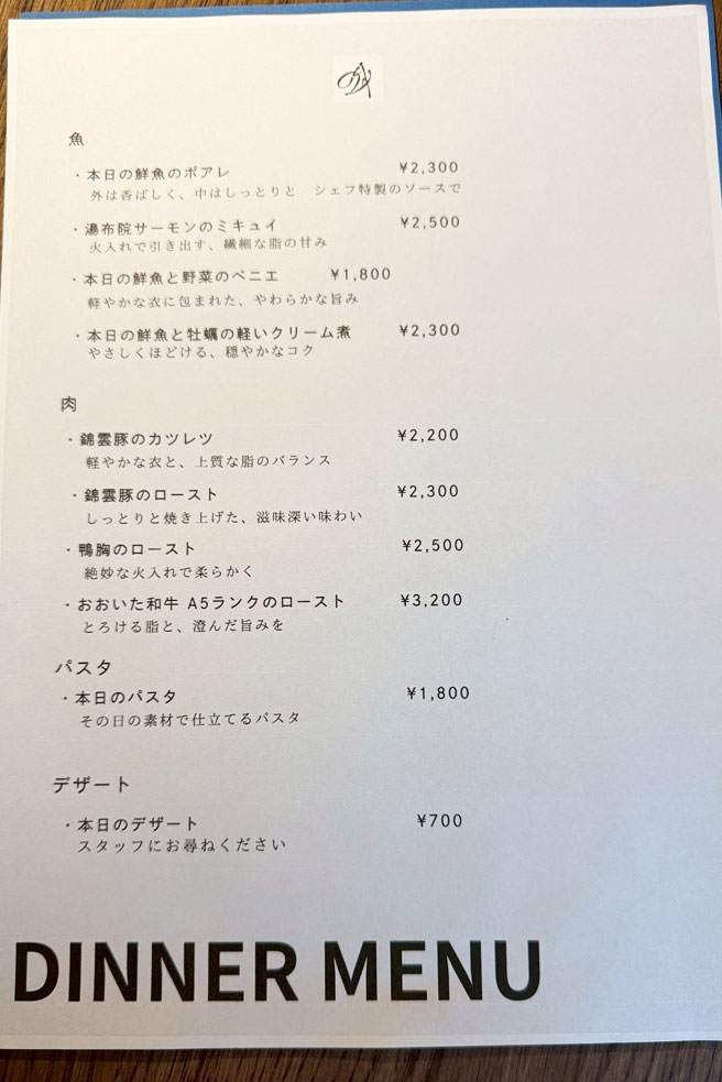 ディナーメニュー
